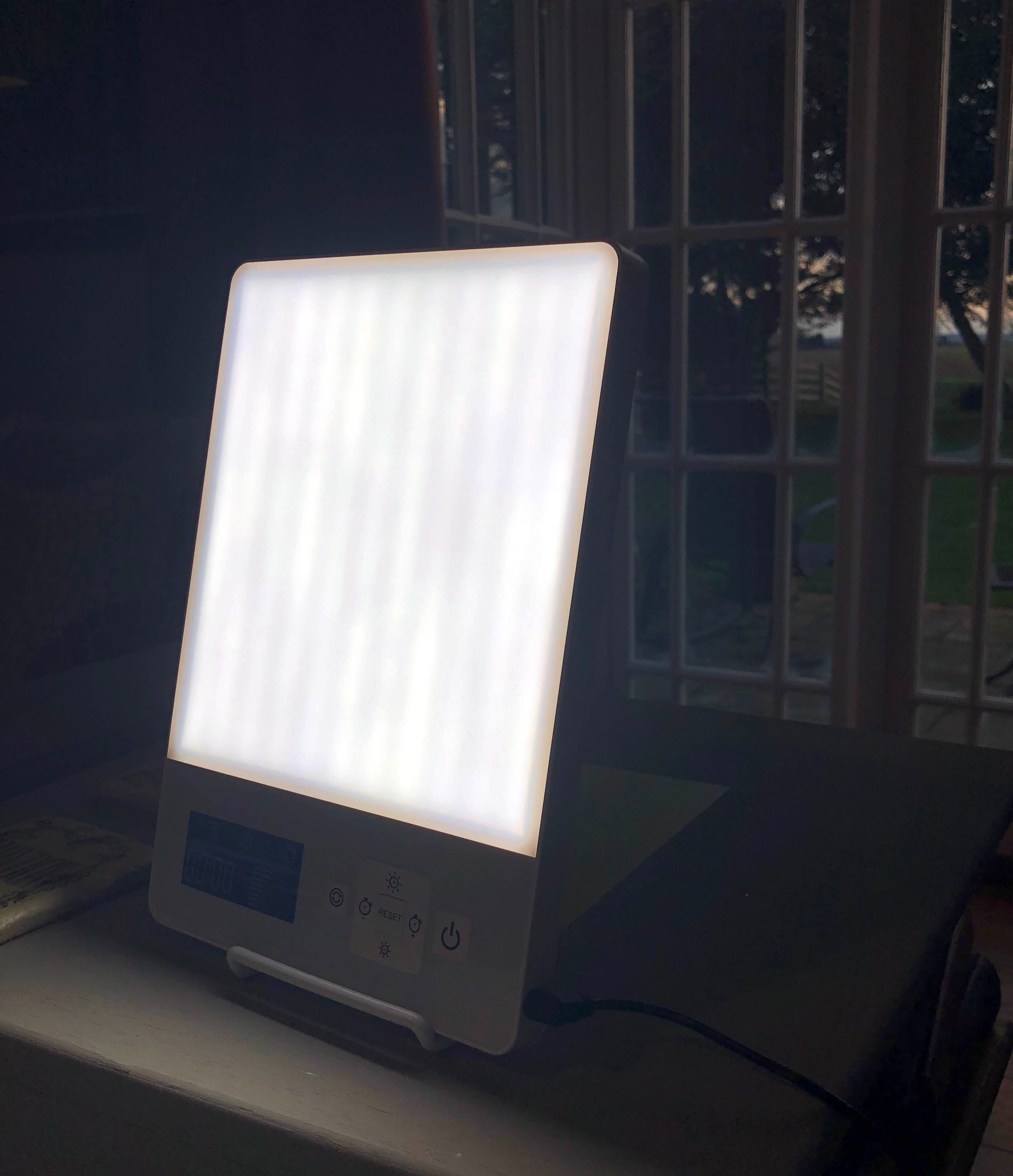 On Christmas morning I unwrapped a sleek, flat SAD lamp that’s not much larger than a standard iPad and about twice as thick. It comes equipped with three levels of white light and a blue tinted light (which I don’t really understand). It also comes with a timer so you don’t overdo yourself on happy light.