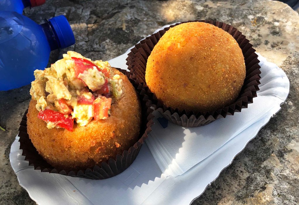 We didn’t have a sit down meal in Erice as we were only there for lunch and cake for breakfast left us pretty full most of the morning. But we did have the most amazing arancini of our lives there. The little to-go restaurant, La Tonda Fritta, (literally the fried round) is located just inside the town gate and isn’t much bigger than a closet. They offer at least 30 different types of arancini in any flavor you could imagine. They have meat, chicken, seafood and vegetarian fillers and even vegan arancini. The staff was amazingly kind and ensured we knew when to eat which of our arancini as some where extremely hot inside and they didn’t want us to burn ourselves. The guy even gave the instructions to me in Italian when I told him I spoke a little. I appreciated that as often in places with lots of tourists they don’t let me practice my Italian as they are usually need to practice their English. I tried the caprese arancini which was absolutely amazing. Tim had the BBQ chicken one which was just as delicious. As I write this I find myself dreaming about these arancini and wonder when I get to go back.