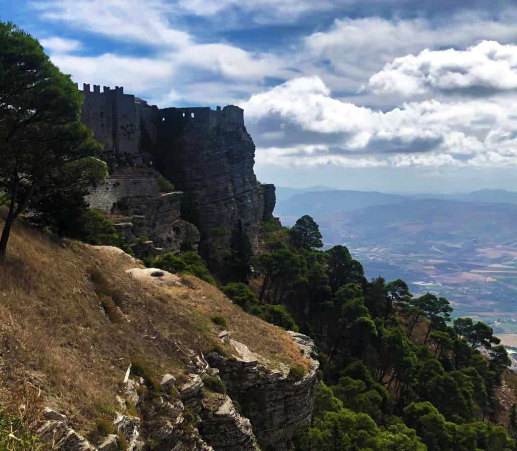 A view of the Castle of Venus perched on the cliffs in the corner of Erice.