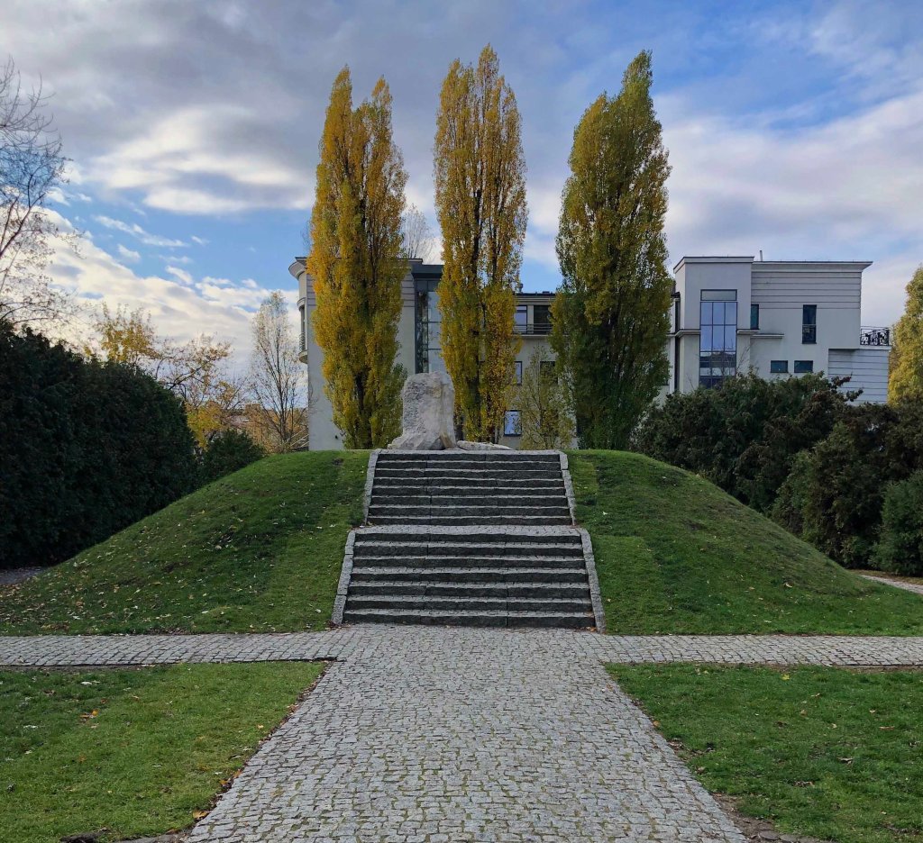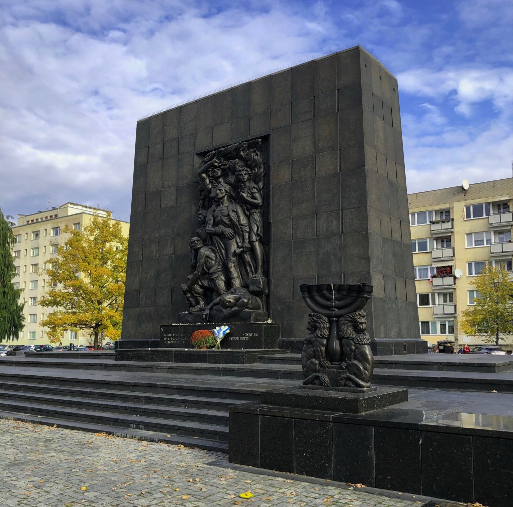Across the courtyard of the POLIN museum is the Pomnik Bohaterów Getta w Warszawie or the “Monument to Ghetto Heroes.” The massive black granite monument was created to memorialize those who died in the Warsaw Ghetto uprising of 1943 and is located on the spot of the first armed battle of the uprising. Parts of the monument are created with labradorite ordered by the Nazis and intended for Nazi German monuments.
