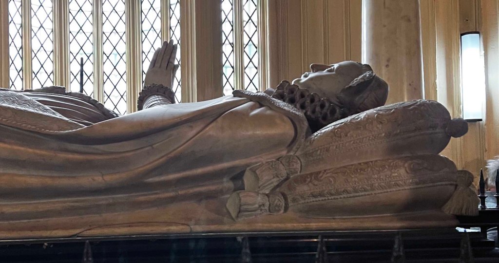 Also buried not far away is the cousin-queen whom Elizabeth I had executed, the unfortunate, Mary Queen of Scots. Her tomb is actually taller than that of Queen Elizabeth I, most likely because it was her son, King James I (or VI, if you’re Scottish), who succeeded QE1 when the three crowns (England, Scotland and Ireland) were united.